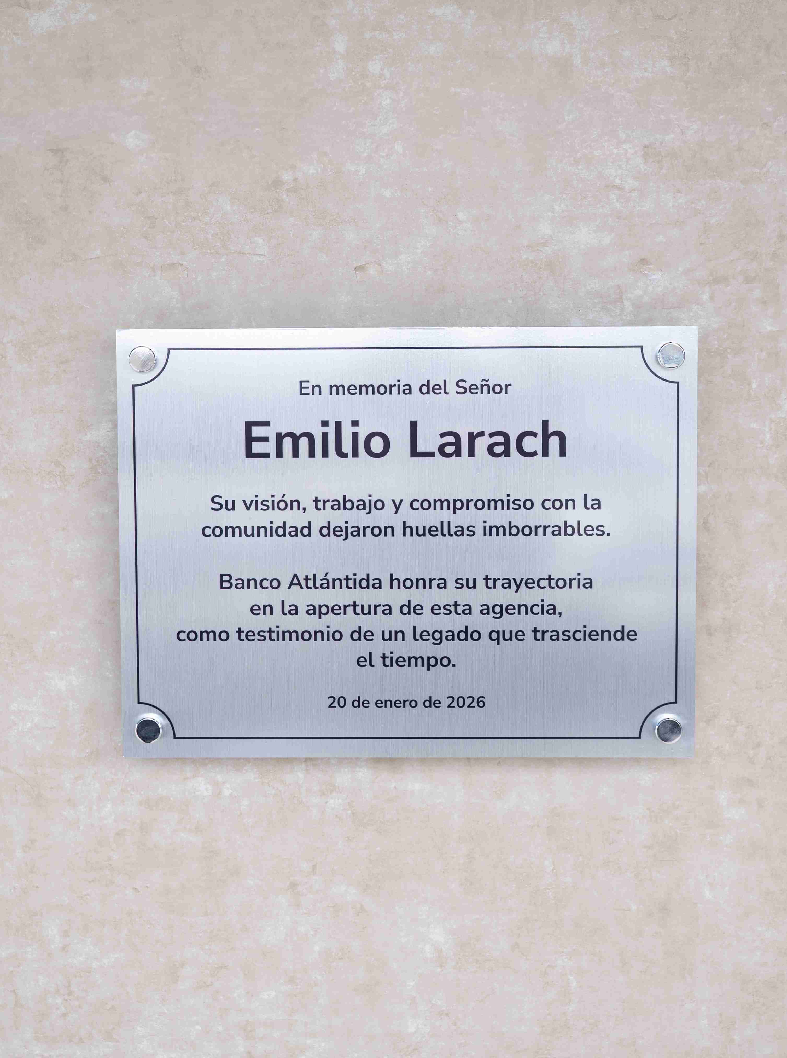 La apertura de esta agencia tiene un significado especial, ya que se realizó un homenaje póstumo a Don Emilio Larach, destacado empresario y fundador de Larach & Compañía, quien falleció en diciembre pasado. En su honor, el Lic. Eliseo Perez Cadalso, vicepresidente Regional de Banca Corporativa, realizó la develación de una placa conmemorativa, reconociendo su legado empresarial, su aporte al desarrollo económico de la región y su estrecha relación con la banca nacional.